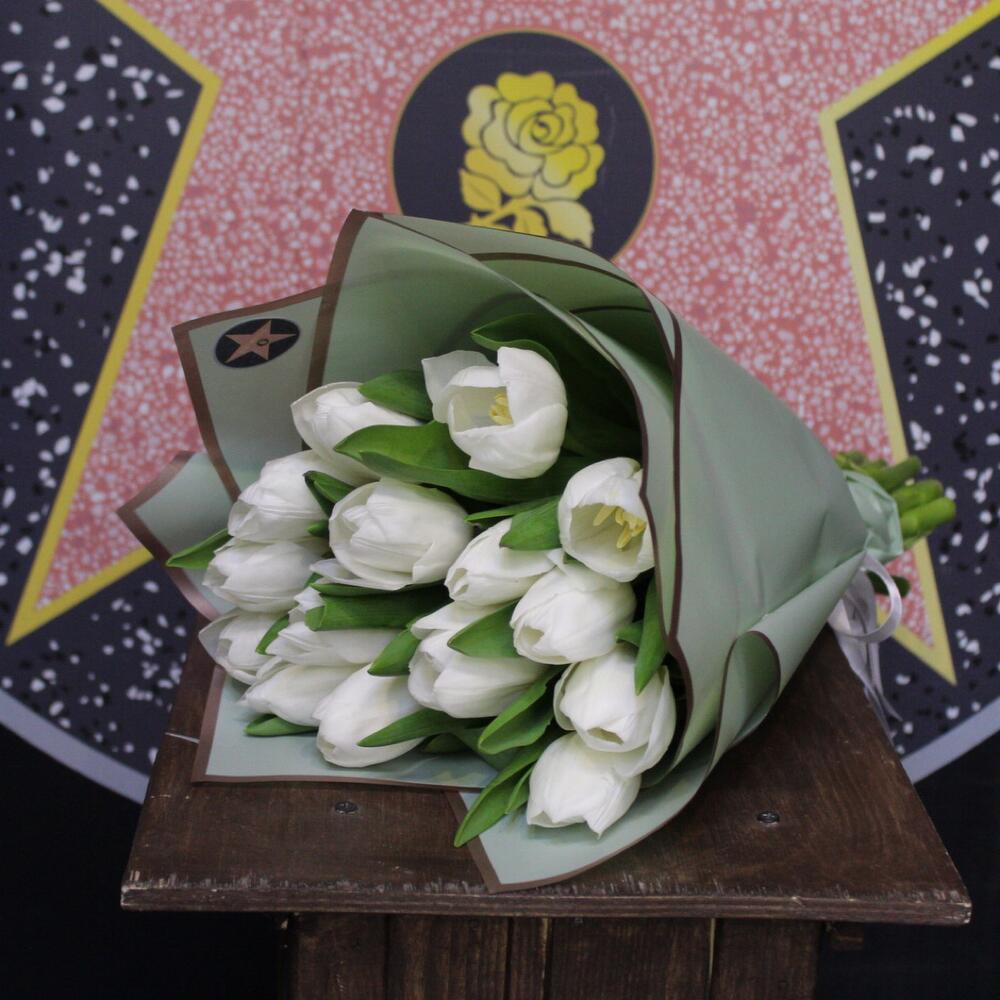 Букет из 15 белых тюльпанов. Тюльпаны голландские. Букет подойдёт для любого мероприятия и торжества. Подарит эмоции и сделает вечер незабываем